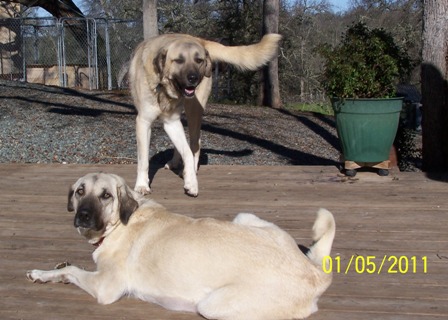 We live in rural Amador County located in Northern California. Coyotes, Bobcats, and Mountain Lions are our neighbors. I don't have a problem with that as long as they leave my critters alone. I do believe that Mountain Lions are getting too populated in California and a restricted hunting season should be opened for them but that's for someone else to do. Anyway, I had for several years thought about getting livestock guardian dogs but just never did get it done. Over the years we did lose animals to coyotes and raccoons but fence repair work and a few bullets properly placed took care of that. But the decision was made after several sightings of Mountain Lions in our area. I myself saw one crossing the highway in the middle of the day. I told the bicycle rider that I saw right after that about it and he commented that he would kill it. Well I don't know what he intended to do with his little helmet, bicycle shorts and bicycle but good for him. But that's another story. During this same time, a friend lost two of her three goats to a Mountain Lion. My decision was made and hubby was going to have to get over it (he initially had reservations). |